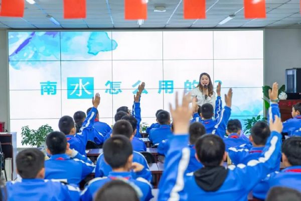 今年是南水北調(diào)中線工程全面通水五周年,為普及南水北調(diào)工程情況,增強(qiáng)學(xué)生保護(hù)工程、愛水節(jié)水的意識,倡導(dǎo)以感恩之心節(jié)約用好南來之水,營造飲水思源的良好氛圍,近日,工大附中十八里店分校在朝陽區(qū)水務(wù)局的助力下,邀請北京市南水北調(diào)團(tuán)城湖管理處的張倩老師為五年級學(xué)生進(jìn)行“千里江水潤京城 惜水節(jié)水我先行”講座。