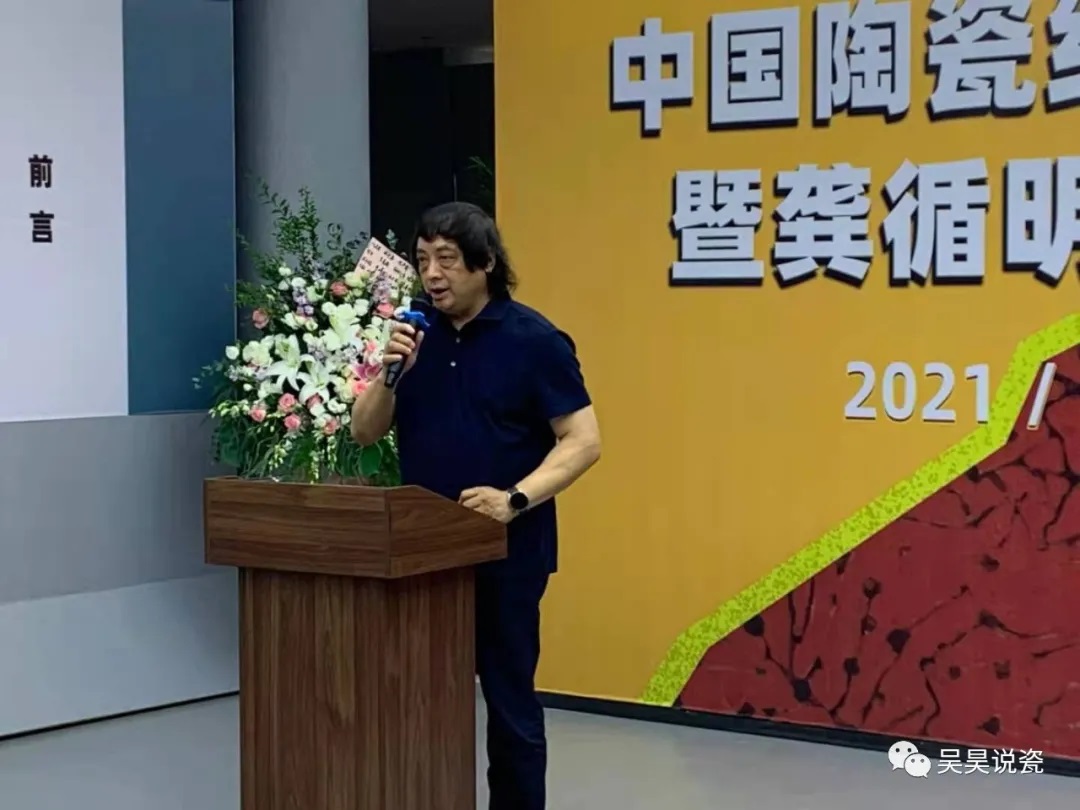 曾瑾(貴州民族大學(xué)陶瓷藝術(shù)研究院院長、國家百千萬人才工程人選、國家有突出貢獻中青年專家、中國工藝美術(shù)大師):作為主辦方之一,我代表貴州民族大學(xué)向龔循明老師表示祝賀!我是景德鎮(zhèn)培養(yǎng)成長的,2017年被貴州人才引進到貴州民族大學(xué),景德鎮(zhèn)是滋養(yǎng)我的根,貴州是我的第二故鄉(xiāng),兩者是不可割舍,是我生命中的創(chuàng)作源泉,把景德鎮(zhèn)的陶瓷文化傳播到貴州,是因為在座各位老師是我堅強的后盾,有你們大家,所以我就有底氣。作為貴州民族大學(xué)人,作為一名從事陶瓷繪畫的從藝者,我就覺得能邀請龔老師的今年的首展能夠在貴州民族大學(xué)舉辦,既是兩地文化在學(xué)術(shù)界的交流,更是具有劃時代的碰撞,因為600年前江西人將制瓷技藝帶到貴州,加上貴州的本土文化,形成了貴州的土陶(現(xiàn)已列為國家非遺),600多年后,龔循明老師的作品展在貴州民族大學(xué)成功舉辦,當(dāng)時在貴州學(xué)術(shù)界引起強烈的反響和高度贊譽,龔老師被貴州民族大學(xué)聘為首席專家,也是核心專家,龔老師能這樣的不斷更新自己的創(chuàng)作理念,把自己的作品和時代融入在一起,也是一個藝術(shù)家的責(zé)任和擔(dān)當(dāng)。我就覺得龔老師不僅是貴州民族大學(xué)藝術(shù)界的榜樣,也是我們這個時代藝術(shù)家的榜樣,不僅在中國的陶瓷藝術(shù)領(lǐng)域璀璨奪目,也必在將來世界陶瓷藝術(shù)領(lǐng)域里引起關(guān)注,用他敏銳的洞察力、具有時代烙印的作品來詮釋陶瓷的藝術(shù)。