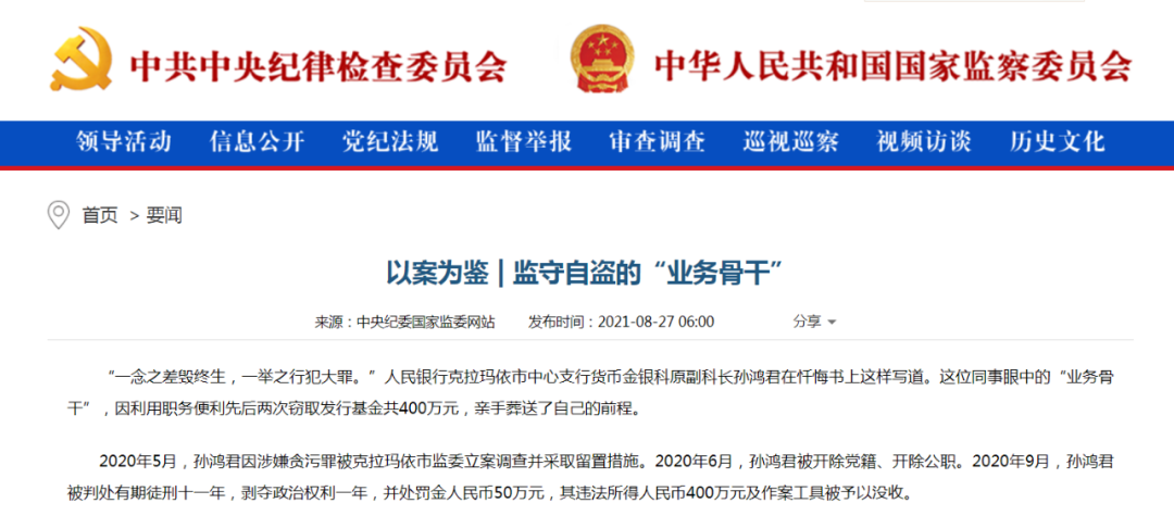 中央紀委國家監(jiān)委網站截圖中央紀委國家監(jiān)委網站截圖
