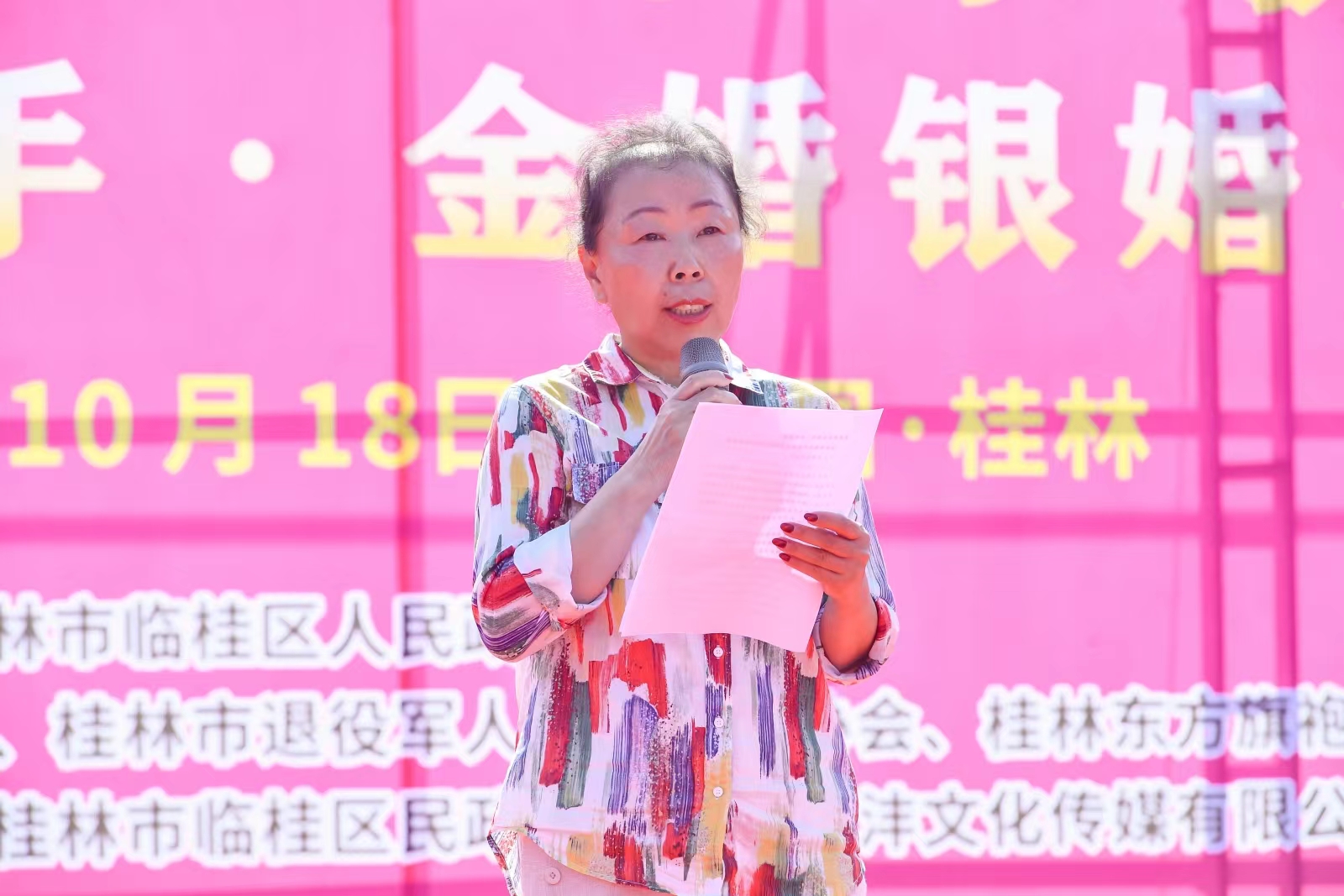 桂林市民政局局長、黨組書記肖必忠同志充分肯定了“百對金婚銀婚·鑒真情”孝親敬老系列公益活動的意義和影響力,并對參會嘉賓和志愿者表示感謝,向參加本屆活動的金婚銀婚夫婦送上美好的祝福。