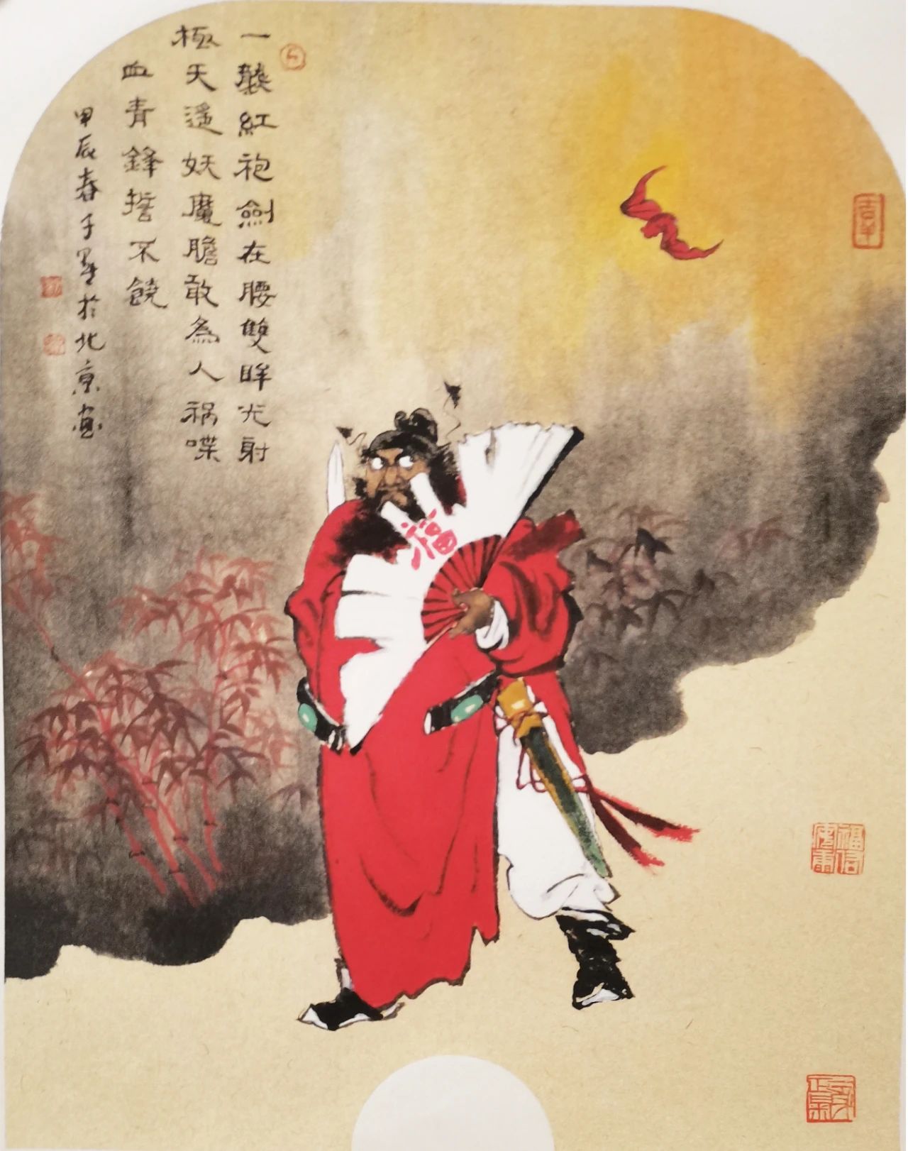 中國傳統(tǒng)“吉祥”文化中,有“諧音”之說,因此,“蝠”亦是“福”。紅色的“蝙蝠”既有“鴻!币徽f。今有畫家子默畫鐘馗“納!,既是納來“鴻!敝。