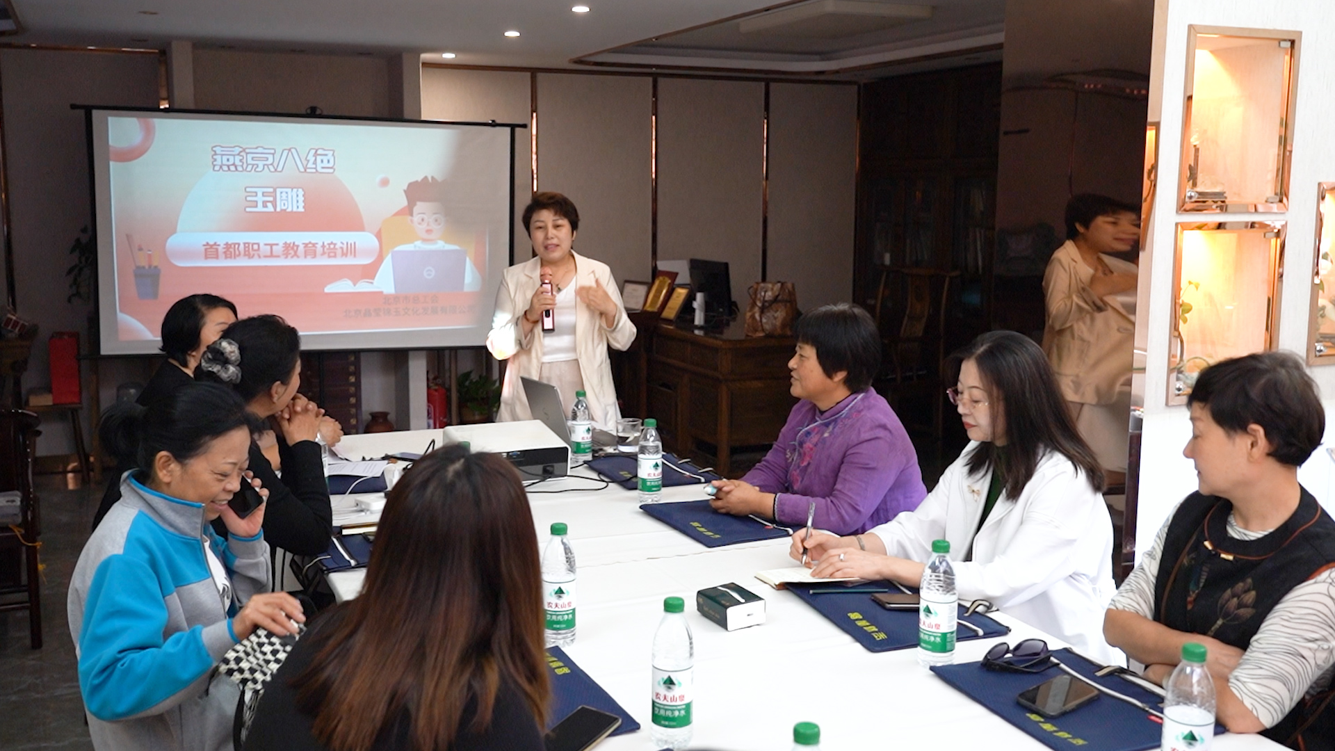 此次職工教育培訓(xùn)班是由北京市總工會(huì)提供政策支持,通州區(qū)總工會(huì),通州區(qū)婦聯(lián),宋莊鎮(zhèn)婦聯(lián)協(xié)辦,北京晶瑩錦玉文化發(fā)展有限公司精心組織策劃,旨在傳承中華民族優(yōu)秀傳統(tǒng)文化,弘揚(yáng)“三個(gè)精神”,提升職業(yè)技能的迫切需求。培訓(xùn)班涵蓋了“燕京八絕”——玉雕領(lǐng)域的課程,包括但不限于職業(yè)技能、市場定位、創(chuàng)新思維等。培訓(xùn)班吸引了30多位來自不同年齡段的學(xué)員踴躍報(bào)名。