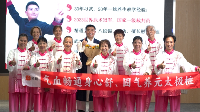 (薛精醫(yī)華和簡橙太極站樁訓練營學員合影,受訪者供圖)