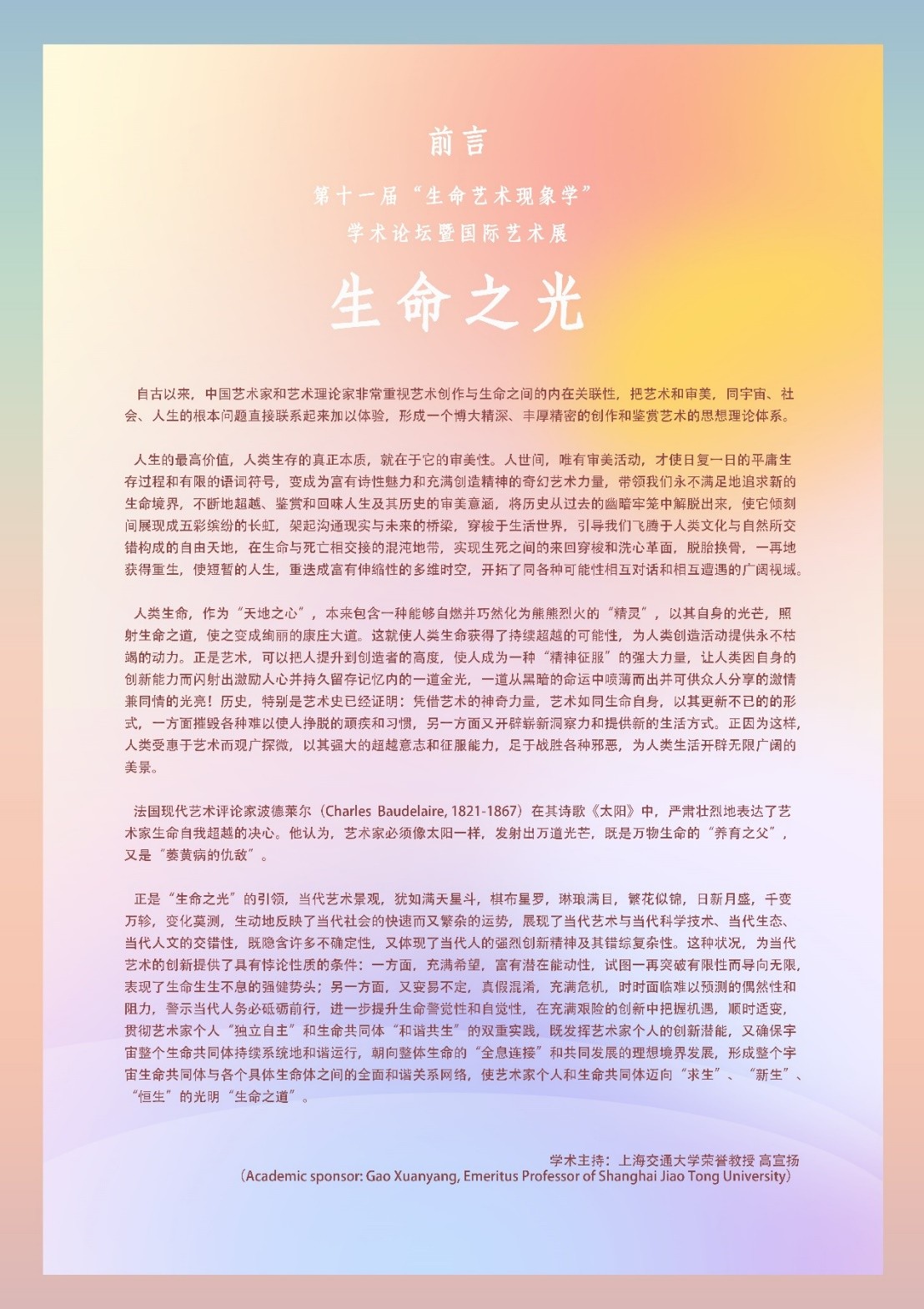 生命之光·第十一屆“生命藝術(shù)現(xiàn)象學(xué)”學(xué)術(shù)論壇