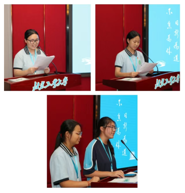 夏令營接近尾聲時,一場隆重而溫馨的閉營儀式為活動畫上了圓滿句號。我校的張雅淇、尹靖彤以及李樂萱、金岑四位同學代表分組發(fā)言,她們懷著真摯的感恩之情,回顧了夏令營期間的豐富經(jīng)歷和點滴收獲,表達了對活動組織方、辛勤付出的老師們以及熱情交流的學長學姐們的衷心感謝,并堅定地喊出了同學們科技報國的遠大志向和不懈追求,贏得了在場師生的熱烈掌聲。