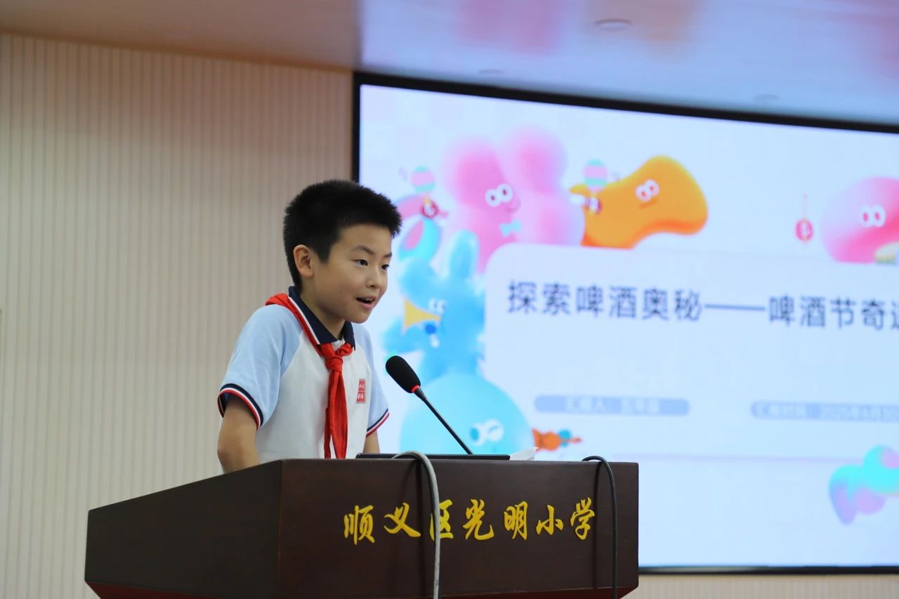 “探秘啤酒奧秘——奇遇啤酒節(jié)”項(xiàng)目化活動,以“發(fā)現(xiàn)啤酒釀造原理并設(shè)計(jì)創(chuàng)意啤酒節(jié)”為核心。項(xiàng)目圍繞三大驅(qū)動問題展開:如何用自然材料布置場地、如何融合趣味與知識設(shè)計(jì)活動、如何讓參與者深度感知啤酒文化。流程上,同學(xué)們先通過資料查詢與實(shí)踐探秘啤酒釀造過程,再分組設(shè)計(jì)“知識問答”“麥穗裝飾大賽”等活動方案,最后動手制作展板、海報及彩泥裝飾。該項(xiàng)目讓同學(xué)們在實(shí)踐中掌握啤酒知識,提升問題解決與合作能力,打造了一場兼具趣味與知識性的探索之旅。
