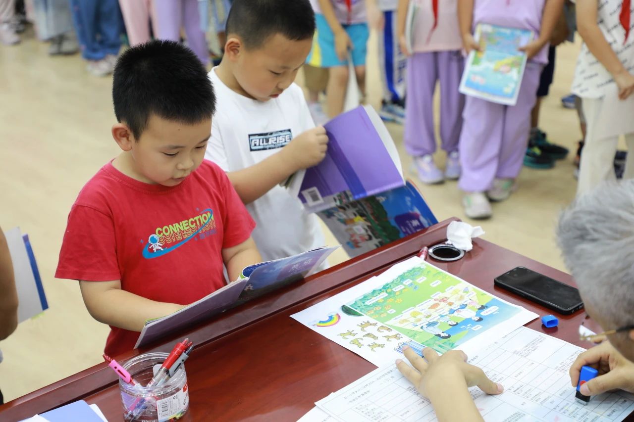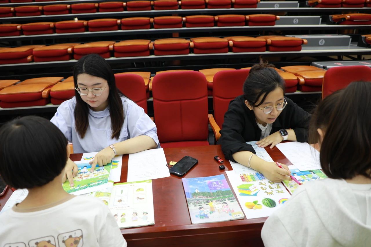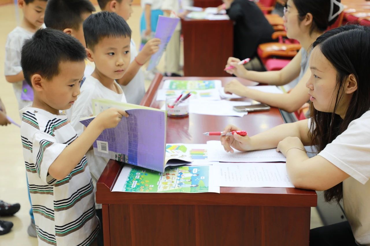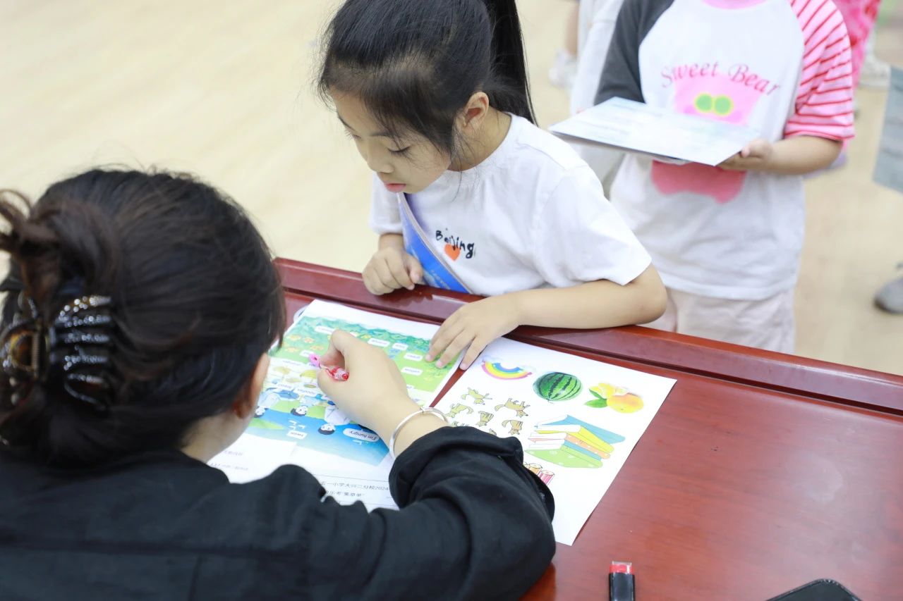樂考現(xiàn)場,學生們手持 “闖關任務卡”,有序穿梭在各個關卡之間。此起彼伏的英語朗讀與對話聲,展現(xiàn)出孩子們積極參與的熱情。他們每個人都全身心投入,用自信的表現(xiàn)和流利的英語展示著一學期的學習成果。