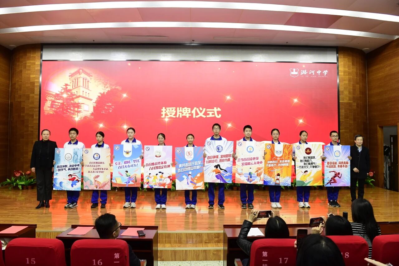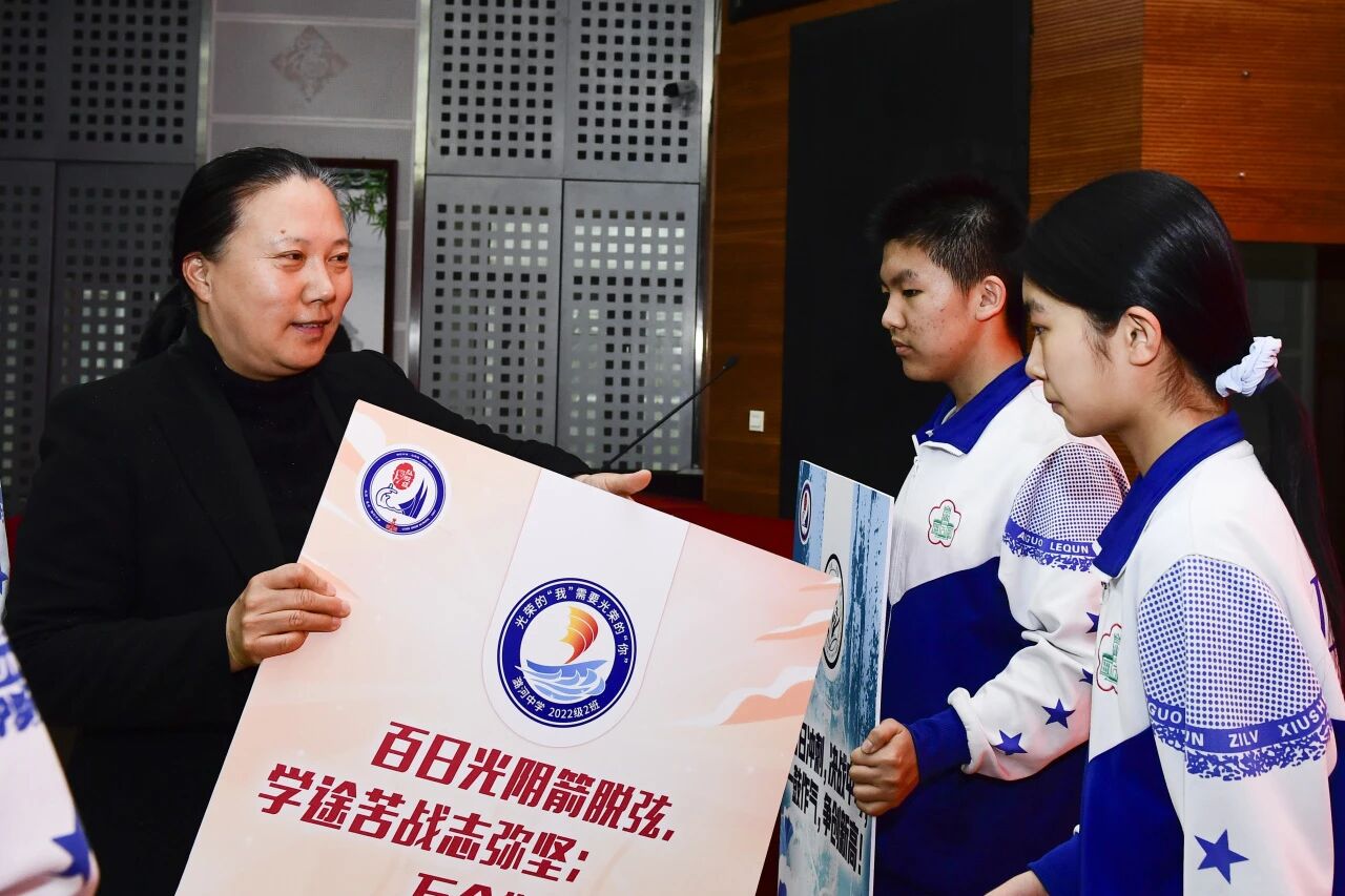 在雷鳴般的掌聲中,謝宏春副校長(zhǎng)與李晨松副校長(zhǎng)為各班授予百日宣誓牌。鐫刻各班標(biāo)語(yǔ)的宣誓牌化作沖鋒的戰(zhàn)鼓。各班班長(zhǎng)高舉宣誓牌的挺拔身姿,凝成初三學(xué)子勇毅前行的精神圖騰。