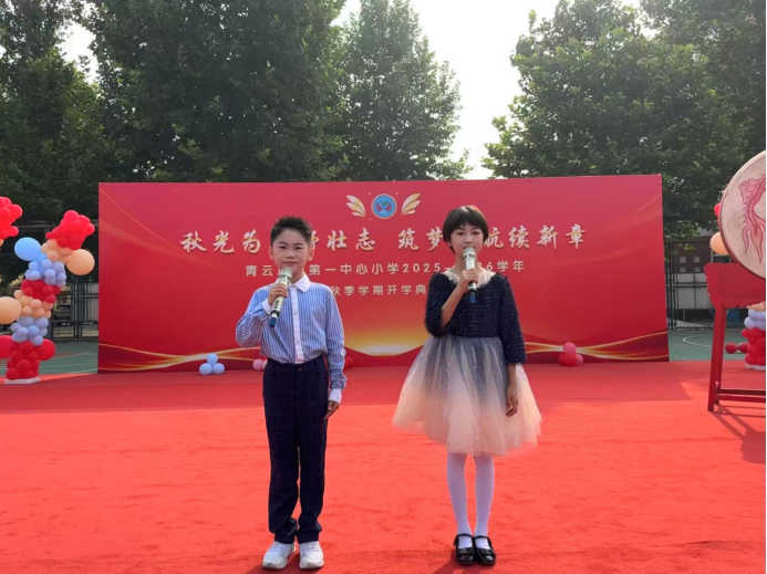 秋陽杲杲,號角已響。新的學年,青云店鎮(zhèn)第一中心小學全體師生將以開學第一課精神為指引,以此次典禮為起點,懷揣夢想、志存高遠,在愛國與奮斗中篤行青春路,在求知與成長中奮發(fā)筑脊梁,向著更美好的未來奮勇前行!