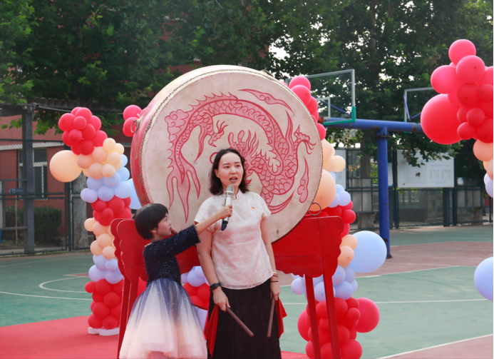 “一擊鼓,敬師長;二擊鼓,樂求知;三擊鼓,志高遠。”在副校長郭芮菁的帶領(lǐng)下鼓聲鳴響,志向明確,全體學生從今啟蒙懂仁義、識禮儀、立志向、多努力。