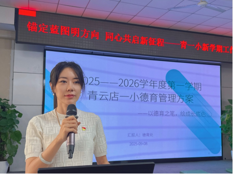 秉初心育桃李,明規(guī)劃啟新篇。為明確新學期發(fā)展方向,系統(tǒng)提升學校綜合能力,青云店鎮(zhèn)第一中心小學于2025年9月8日組織召開新學期計劃解讀會,學校書記、校長孫嚴及全體教職工參會。