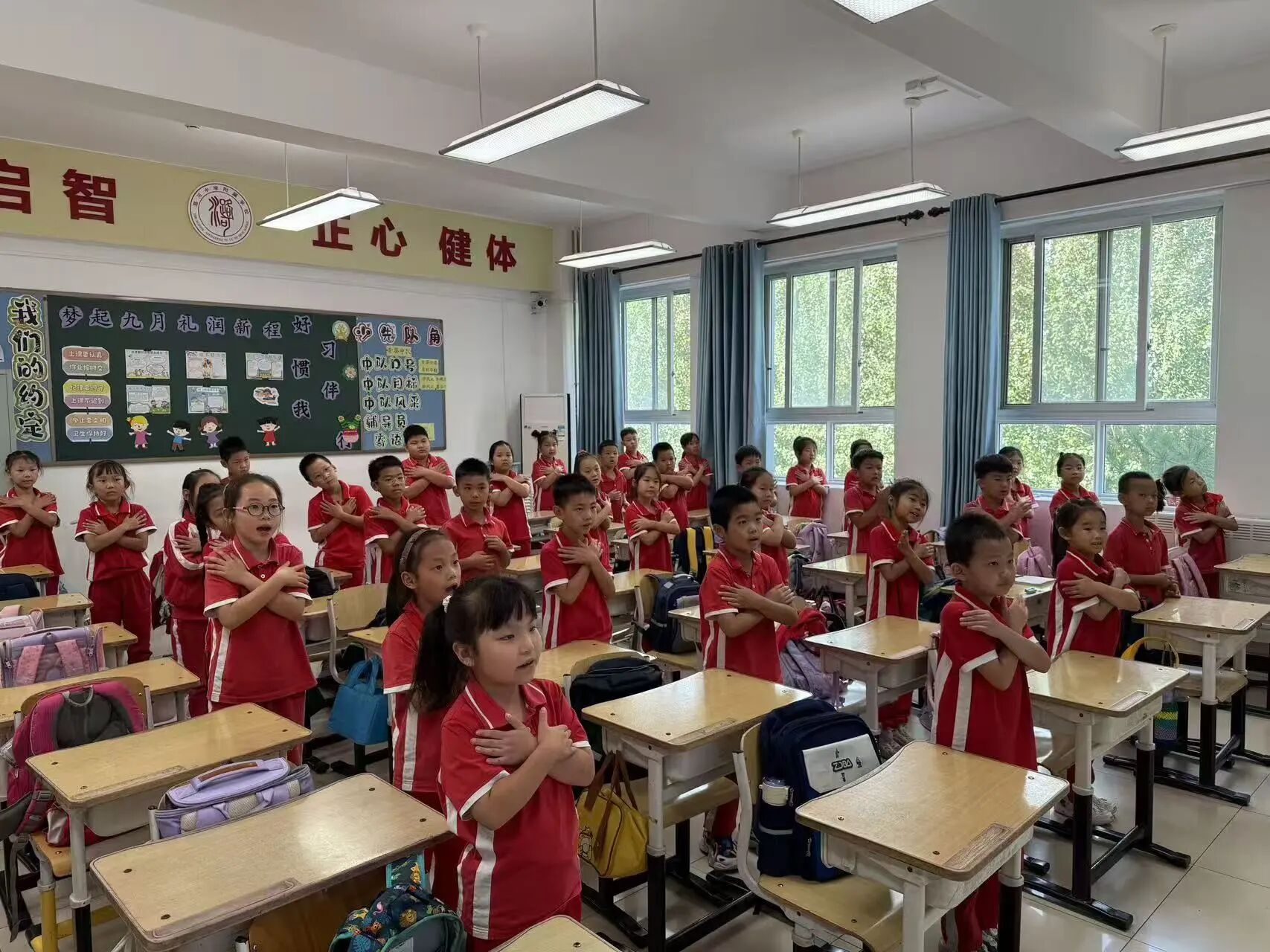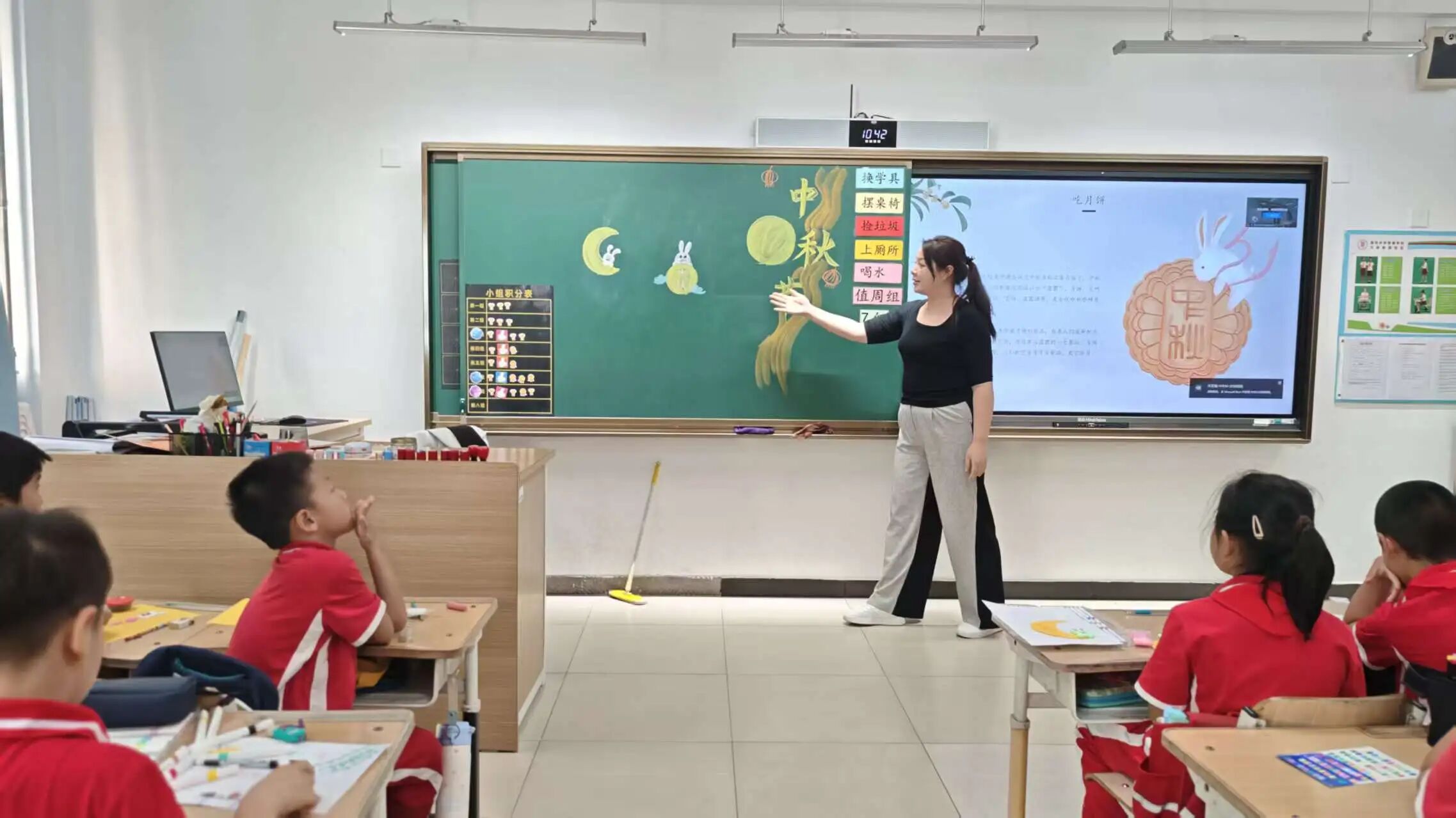 “爺爺為我打月餅呀,月餅圓圓甜又香……”清脆的童聲像靈動(dòng)的音符,在教室里回蕩。伴著大家“打月餅”手勢(shì),節(jié)日的氛圍瞬間拉滿。同學(xué)們用稚嫩的嗓音唱出對(duì)中秋的喜愛,歌聲里滿是童真與祝福。