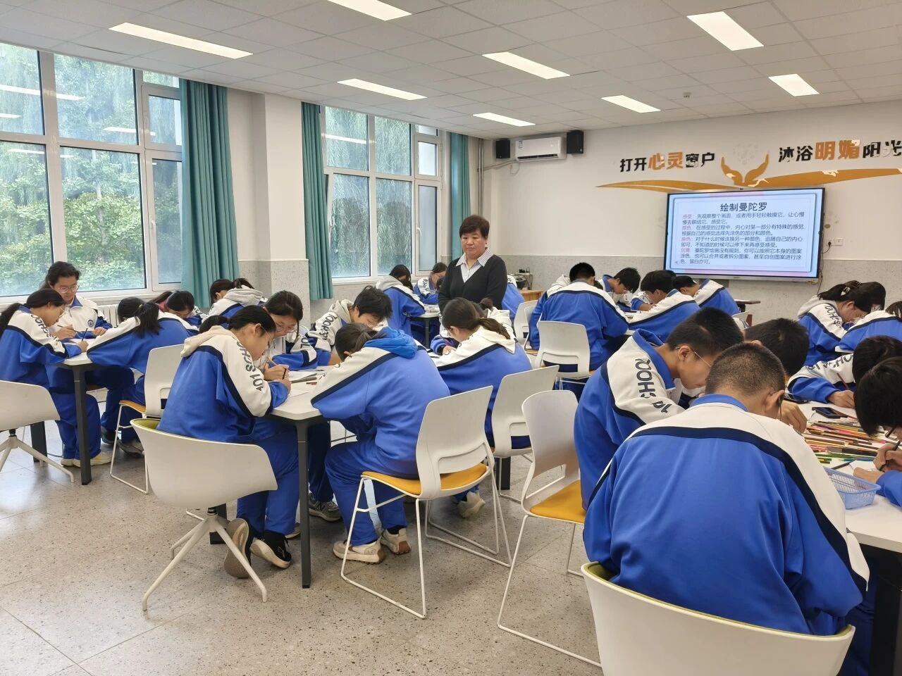 在課堂觀摩環(huán)節(jié),北京一零一中大興分校心理教師韓俊明執(zhí)教《我的彩繪曼陀羅》主題心理課,以色彩與線條為載體,引導(dǎo)學(xué)生探索內(nèi)心、體驗(yàn)藝術(shù)療愈。課程創(chuàng)新性引入AI智能體,有效輔助學(xué)生開(kāi)展深度自我探索,突破傳統(tǒng)課堂自我洞察的局限。