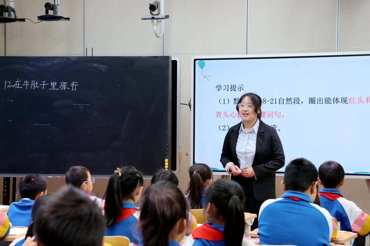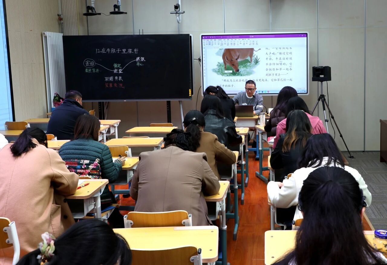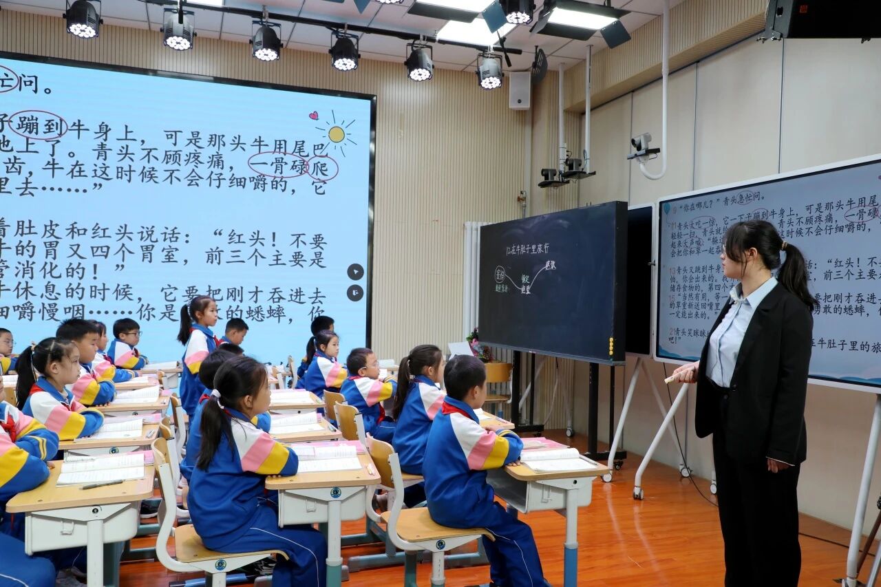 活動分為兩個環(huán)節(jié)。專家、領(lǐng)導(dǎo)和語文教師共同聆聽了由新教師劉青玉老師執(zhí)教的三年級上冊《在牛肚子里旅行》第二課時。劉老師帶領(lǐng)學(xué)生們在童話的世界里暢游,呈現(xiàn)了一堂生動有趣的語文課。