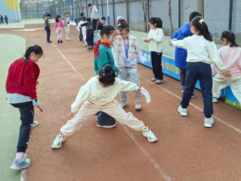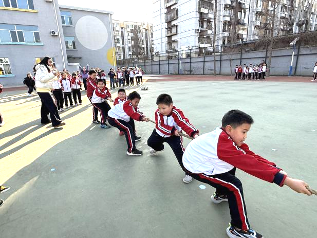 “猜丁殼拔河大賽”將現(xiàn)場(chǎng)氣氛推向了高潮。孩子們分成兩隊(duì),先通過(guò)猜丁殼的方式?jīng)Q定哪一隊(duì)先開(kāi)始拔河。猜丁殼時(shí),大家都全神貫注,眼睛緊緊盯著對(duì)手的手,心里默默盤(pán)算著策略。隨著老師一聲令下,拔河比賽正式開(kāi)始。加油聲、歡呼聲此起彼伏,整個(gè)操場(chǎng)都沸騰了起來(lái)。在這個(gè)充滿(mǎn)歡樂(lè)和競(jìng)爭(zhēng)的游戲中,孩子們充分感受到了數(shù)學(xué)與體育相結(jié)合的樂(lè)趣,同時(shí)也鍛煉了團(tuán)隊(duì)的協(xié)作能力和競(jìng)爭(zhēng)意識(shí)。