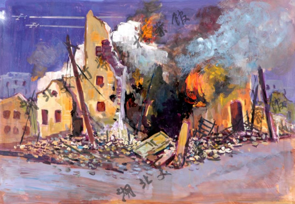 《城市被炸》 48cm×34cm 水粉 2001年