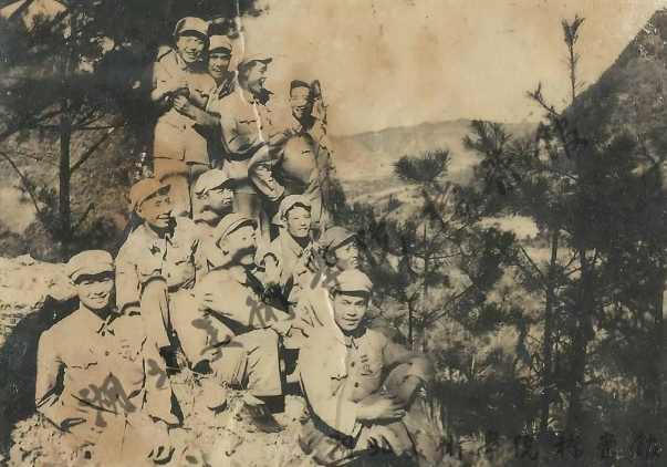 寧璘(前排左一)在朝鮮戰(zhàn)場山崗上與戰(zhàn)友合影