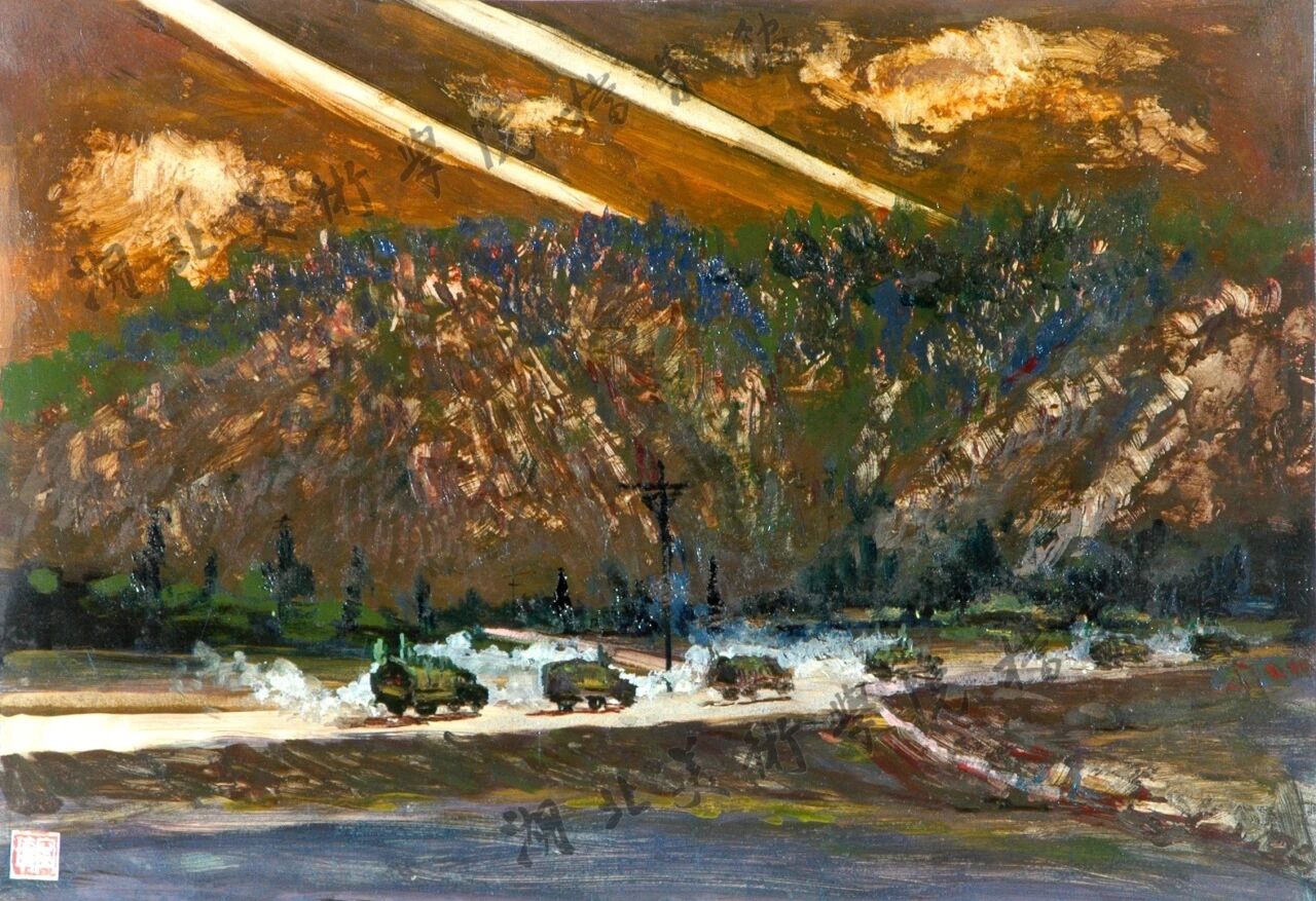 如今,105歲高齡的寧璘校友依然健在,他的人生軌跡與建校105周年的湖北美術學院同齡共振。從武昌藝專的畫室到朝鮮戰(zhàn)場的硝煙,再到景德鎮(zhèn)陶瓷大學的三尺講臺,一生堅守“藝術報國”的赤誠信念。他筆下的抗美援朝題材作品,早已超越個人記憶的邊界,成為民族集體記憶與不朽精神的載體。其中《向三八線挺進》一畫,既定格了烽火歲月的壯闊瞬間,更鐫刻了一代人在國家危難之際“以筆為刃”的初心與擔當,這段熠熠生輝的人生印記,已永遠載入百年湖美校史,終將成為一部傳承紅色基因、培根鑄魂育人的生動教材。