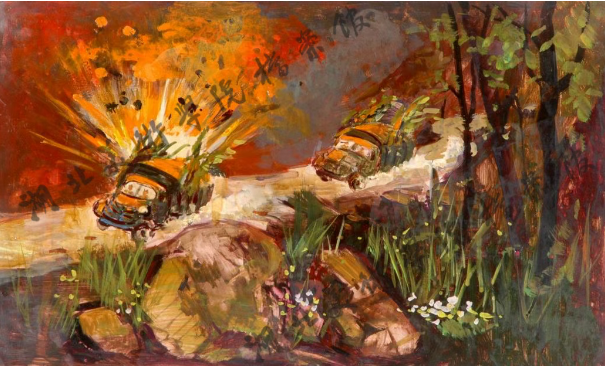 《向三八線挺進》48cm×30cm 油畫 1999年