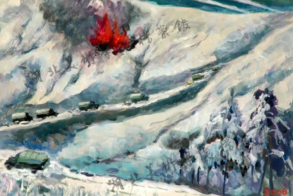 1958年,寧璘調(diào)任景德鎮(zhèn)陶瓷學院(現(xiàn)景德鎮(zhèn)陶瓷大學)美術系任教,自此扎根杏壇,直至光榮退休?姑涝瘧(zhàn)場的烽火印記,早已熔鑄于他的生命底色與藝術創(chuàng)作之中。晚年歲月里,他憑借刻骨銘心的戰(zhàn)地記憶,潛心創(chuàng)作了《向三八線挺進》等一批經(jīng)典畫作,生動再現(xiàn)了志愿軍將士頂著槍林彈雨、冒著酷寒嚴霜奮勇挺進的壯烈場景。寧鋼教授動情回憶:“每次提及抗美援朝崢嶸往事,父親總是心潮起伏,久久難以平復!