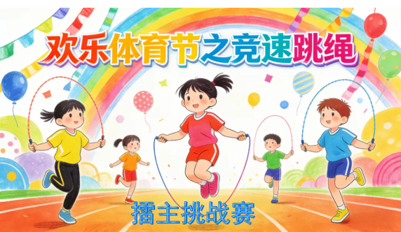 最令人期待的莫過于競速跳繩小擂主爭霸賽。從各年級脫穎而出的跳繩高手齊聚一堂,展開了一場速度與技巧的較量。隨著裁判的哨聲,選手們火力全開,繩子甩動的“呼呼”聲與同學(xué)們的吶喊聲交織在一起。有的選手節(jié)奏均勻,速度驚人;有的選手技巧嫻熟。經(jīng)過多輪比拼,最終誕生了本次體育節(jié)的“跳繩小擂主”。