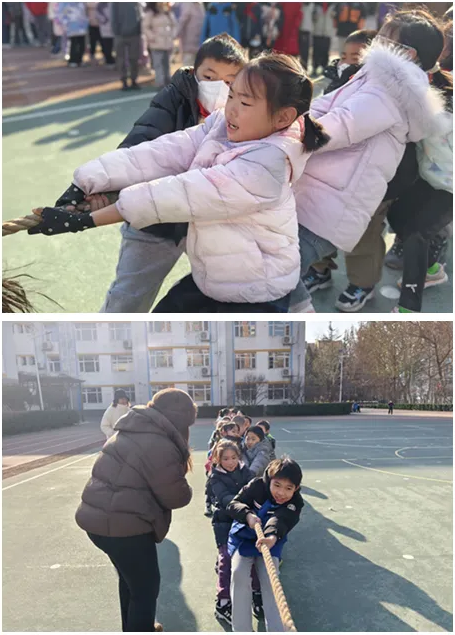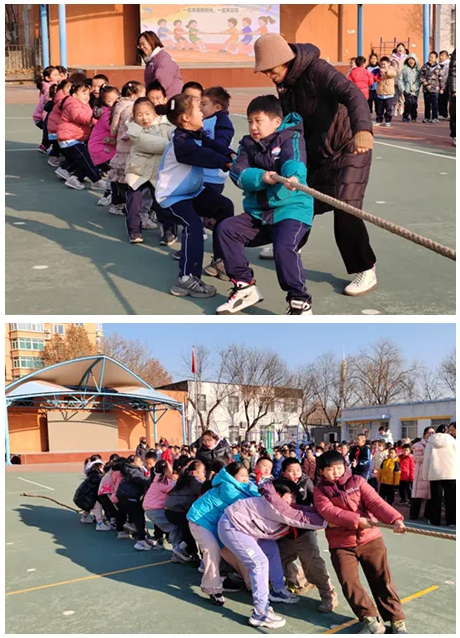 最具人氣的當(dāng)屬拔河比賽。只見各班選手緊緊攥住繩子,雙腳用力蹬地,身體后傾,一個個小臉憋得通紅!凹佑!加油!”場邊的啦啦隊揮舞著小旗子,喊出的口號震耳欲聾。隨著裁判一聲哨響,繩子兩端的同學(xué)們齊心協(xié)力往后拉,紅綢帶在中間來回移動,每一寸拉扯都充滿了力量。