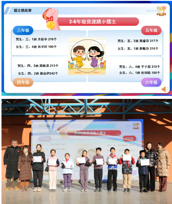 在此,我們也向全體同學(xué)發(fā)出邀請:趁著寒假時光,堅持跳繩鍛煉,挑戰(zhàn)206個的小目標(biāo),讓運動習(xí)慣伴我們成長!讓我們共同期待明年體育節(jié)再相聚,屆時再展少年風(fēng)采!相信這份對運動的熱愛與執(zhí)著,會伴隨同學(xué)們在成長的道路上不斷前行!