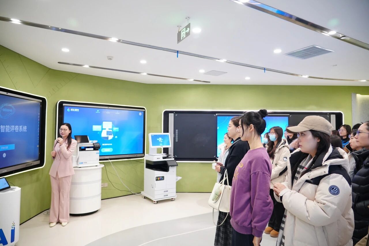 上午,教師們抵達(dá)科大訊飛北京總部后,便直奔人工智能成果展示區(qū),核心聚焦“AI+教育”相關(guān)成果,每一項(xiàng)成果都緊密貼合教學(xué)實(shí)際,讓老師們直觀感受到人工智能為課堂帶來(lái)的變革。
