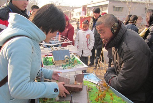 精致逼真的別墅模型很快吸引了許多村民的圍觀。學(xué)會成員在自報家門,說明來意后就模型熱情的講解有關(guān)建筑節(jié)能減排的內(nèi)容。一座能拆合的別墅模型勾起了在場村民的好奇心,講解人員從別墅與普通平房的相似處講起,拉近了與村民的距離。他們認(rèn)真的聽完后與同學(xué)們熱烈地討論起常見的低耗環(huán)保措施,如使用雙層玻璃,墻體砌入麥秸等。一座精巧的高樓結(jié)構(gòu)模型引起了一位小男孩的注意,在講解人員的鼓勵幫助下他站了上去,露出難以置信的表情。當(dāng)?shù)弥P腿坎捎蒙钣闷罚鐥売脹鱿,回收的一次性筷子等材料時,村民們笑著豎起了大拇指。整個活動中前來參觀的人絡(luò)繹不絕,寒冷的天氣阻擋不了大家的熱情。