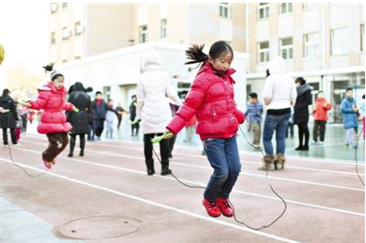 2014年12月24日,東四十四條小學(xué),學(xué)生在進(jìn)行跳繩比賽。