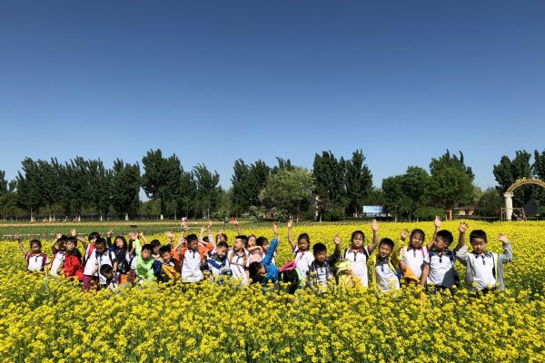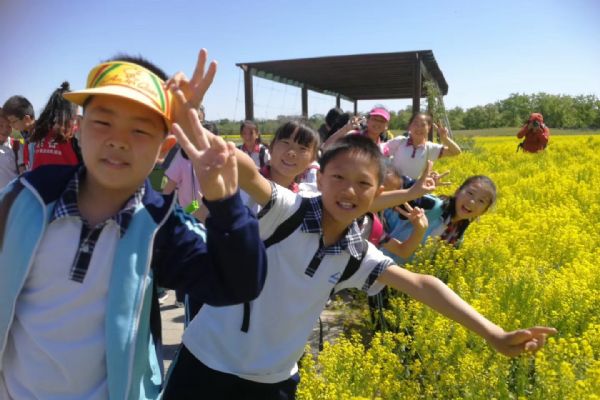 大家首先走進植物觀賞區(qū),欣賞五月花海。師生們在這里觀賞油菜花、二月蘭等植物,觀賞它們的生存環(huán)境,了解生長周期、藥用價值等;讓學生感受自然之美,提升審美能力。