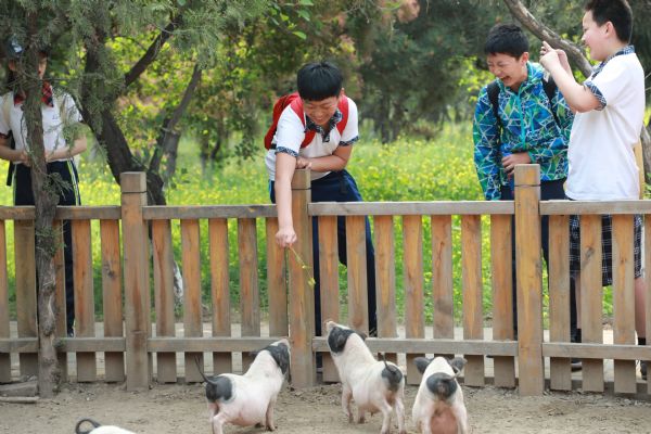 之后,在萌寵樂園,同學們親密接觸羊駝、小白兔、迷你豬等小動物,學生們通過觀賞小動物,了解動物保護知識,樹立學生人與動物和諧共生的意識。