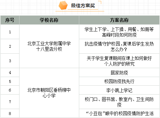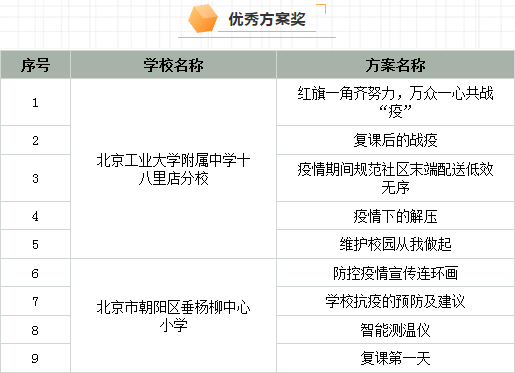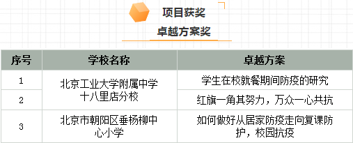 項(xiàng)目研究過程中,讓我們充分感受到學(xué)生作為校園主體,從來都是學(xué);顒(dòng)的主角,在守護(hù)校園衛(wèi)生、確保師生健康的“防疫”中也不例外,是“校園防疫”的主人翁。他們從家庭抗疫、學(xué)校抗疫、校外抗疫入手,以團(tuán)隊(duì)的方式,提出切實(shí)可行的防控方案,得到了評(píng)委的認(rèn)可,獲得了優(yōu)異的成績。獲獎(jiǎng)如下: