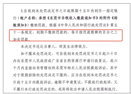 告知書最后,按照林林總總的罰款條目,東莞自然資源局一共開出了高達(dá)55萬(wàn)多元的巨額罰款,其中每一項(xiàng)內(nèi)容都是頂格處罰。