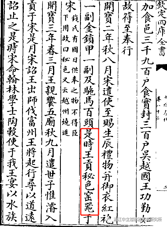 清乾隆朱琰 著《陶說》卷二18頁,吳越秘色窯,錢氏有國(guó)日,越州燒進(jìn)者、臣庶不得用。
